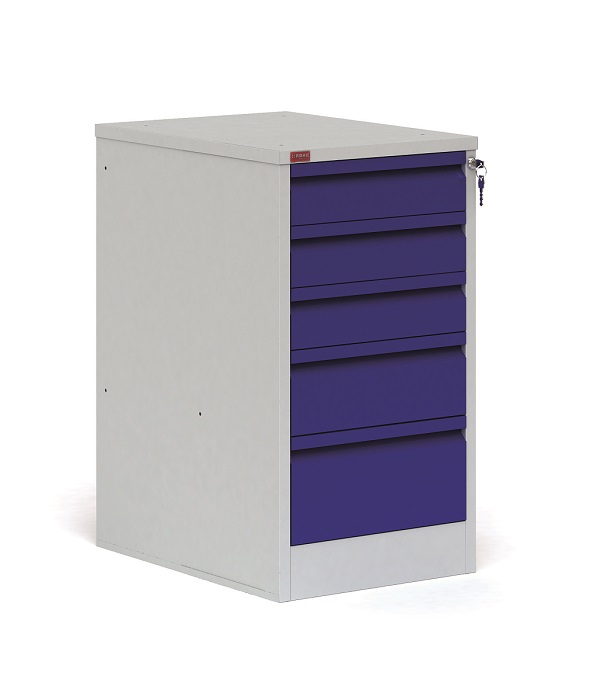 Металлические слесарный верстак ВП-4 представляет собой рабочий стол для ручной обработки металлических, деревянных изделий, а также предметов, выполненных из других материалов. Металлический верстак используется в мастерских, гаражах, автосервисах и в других рабочих зонах. Он являются основой, как небольшого промышленного производства, так и крупного предприятия. Допустимая равномерно распределенная нагрузка на верстак - 1000 кг, на полку верстачную - 40 кг, на выдвижной ящик и полку тумбы Т-1 - 30 кг. В комплект верстака ВП-4 входит: столешница СТ-3 из МДФ, покрытая оцинкованным листовым металлом, стенка задняя металлическая, тумба Т-2 с пятью выдвижными ящиками, тумба Т-1 с двумя съемными полками. Тумбы закрываются ключевым замком. Дополнительно на верстак можно установить перфорированный экран соответствующего размера, аксессуары на экран. Цвет: верстак - серый Ral 7035, дверь тумбы - синий Ral 5002
